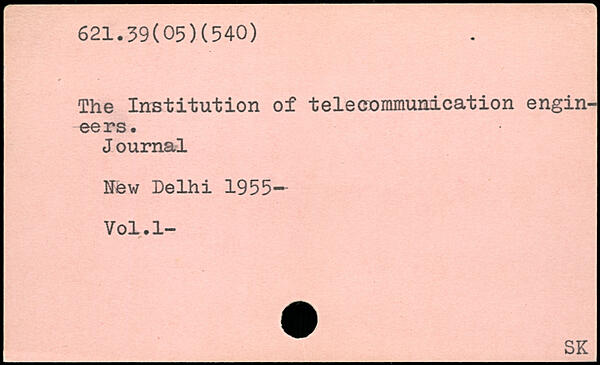 The Institution of telecommunication engineers. J ournal New Delhi 1955~ Vol.l-