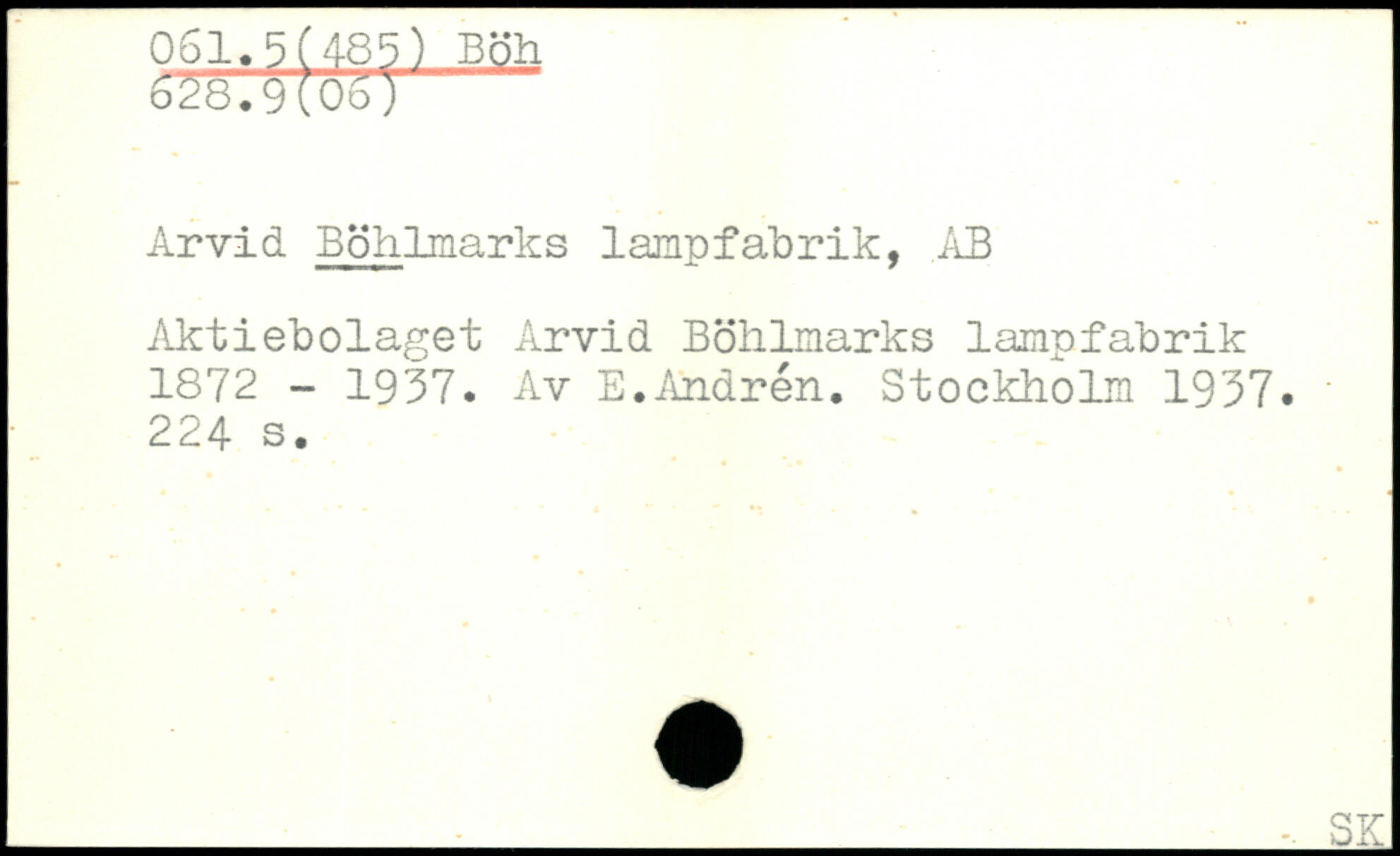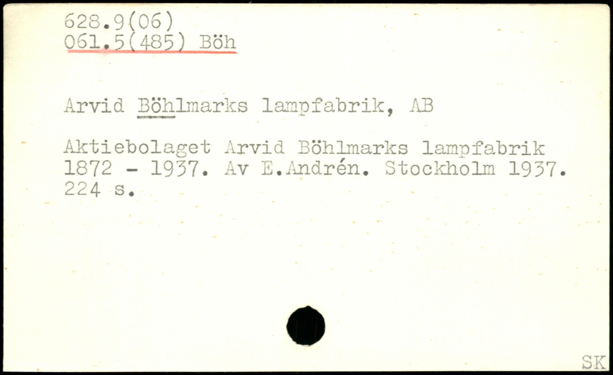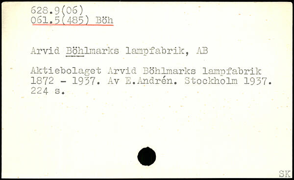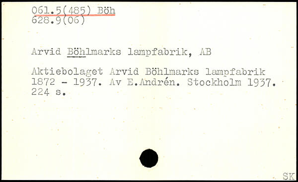 Arvid Böhlmarks lampfabrik, .AB Aktiebolaget Arvid Böhlmarks lampfabrik 1872 - 1937. Av E.Andrén.