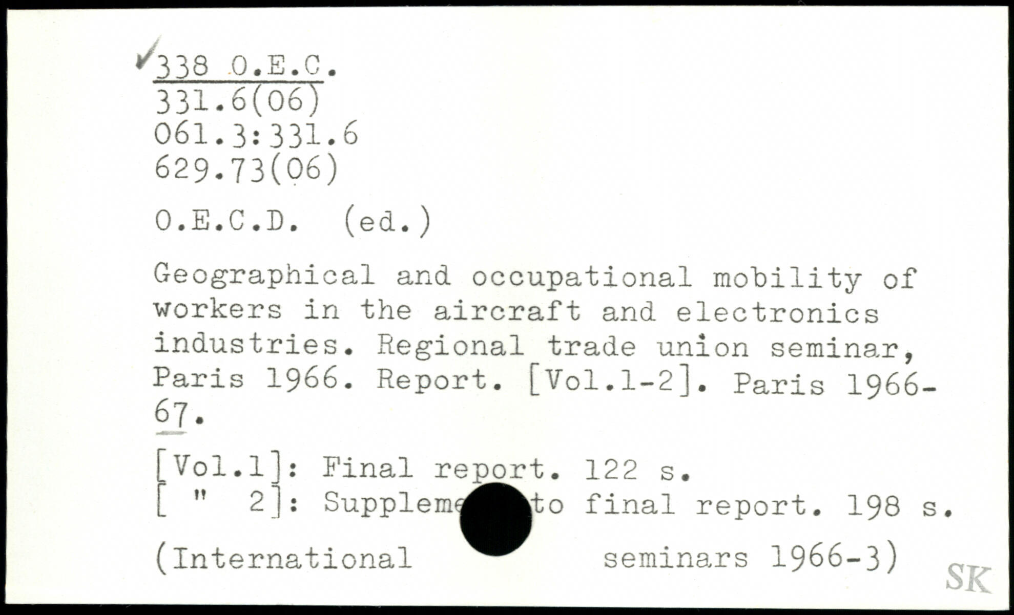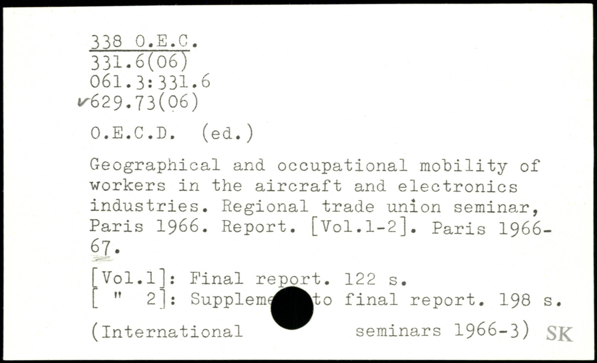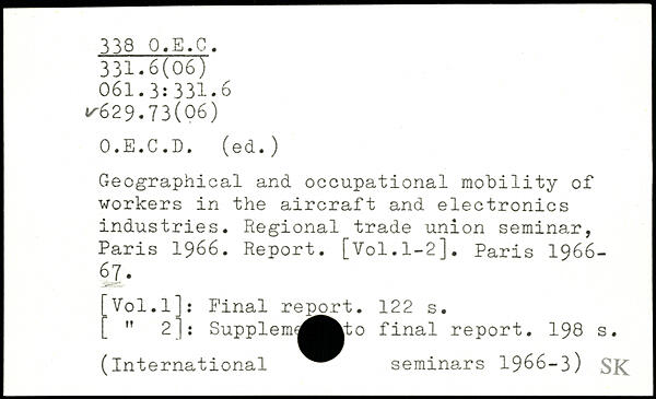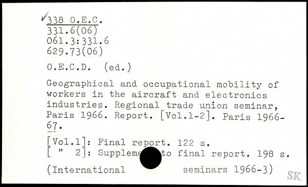 O.E.C.D. (ed.) Geographical and occupational mobility of workers in the aircraft and electronics industries. Regional trade union seminar
