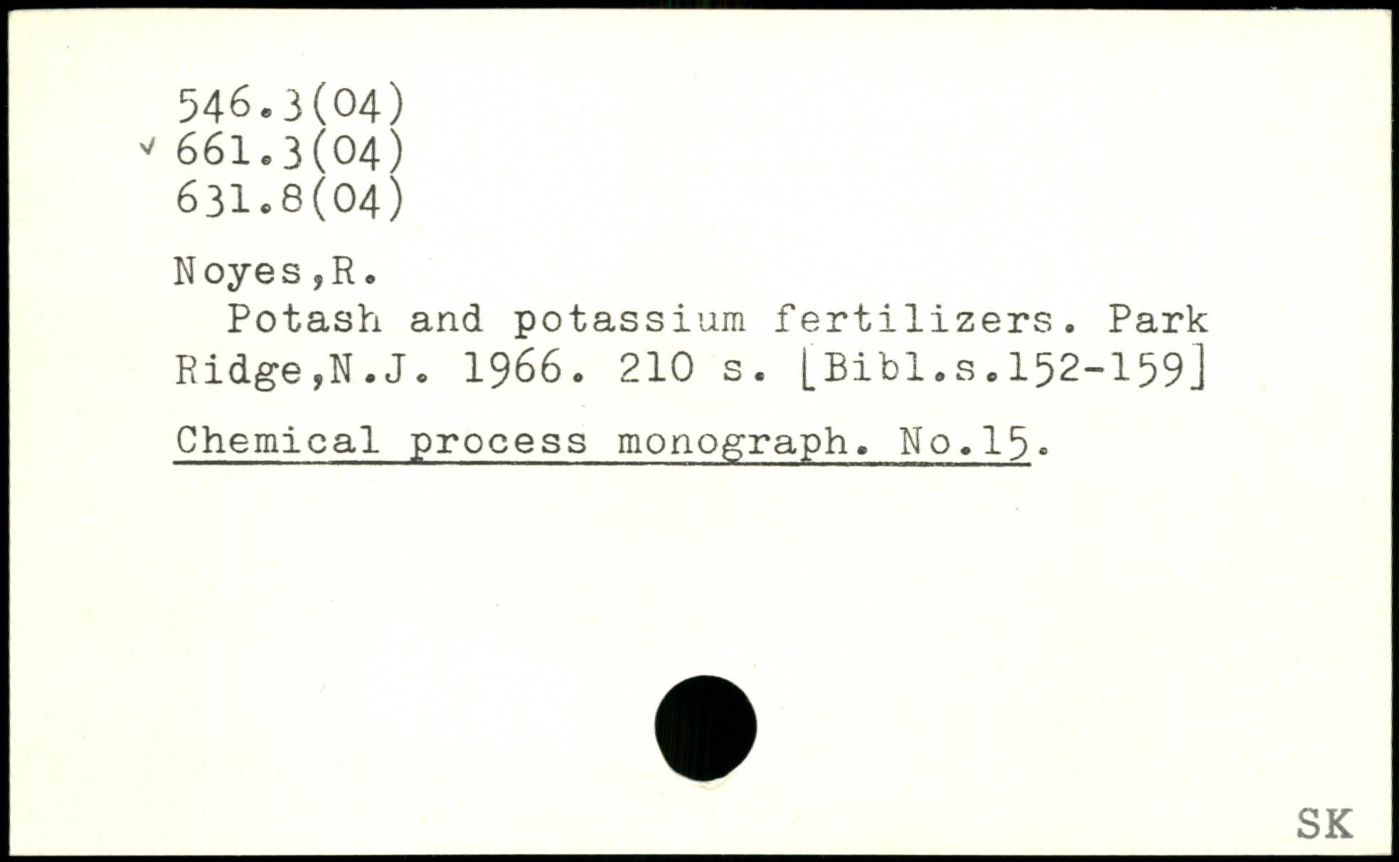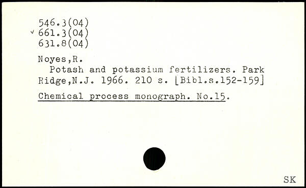 Potash and potassium fertilizers. Park Ridge,N.J. 1966.
