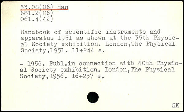 Handbook of scientific instruments and apparatus 1951 as shown at the 35th Physical Society exhibition.
