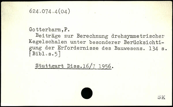 Beiträge zur Berechnung drehsymmetrischer Kegelschalen unter besonderer Berücksichtigung der Erfordernisse des Bauwesens.