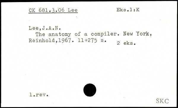 Le6 j J. A,N. The anatomy of a compiler. New York) Reinhold,1967.