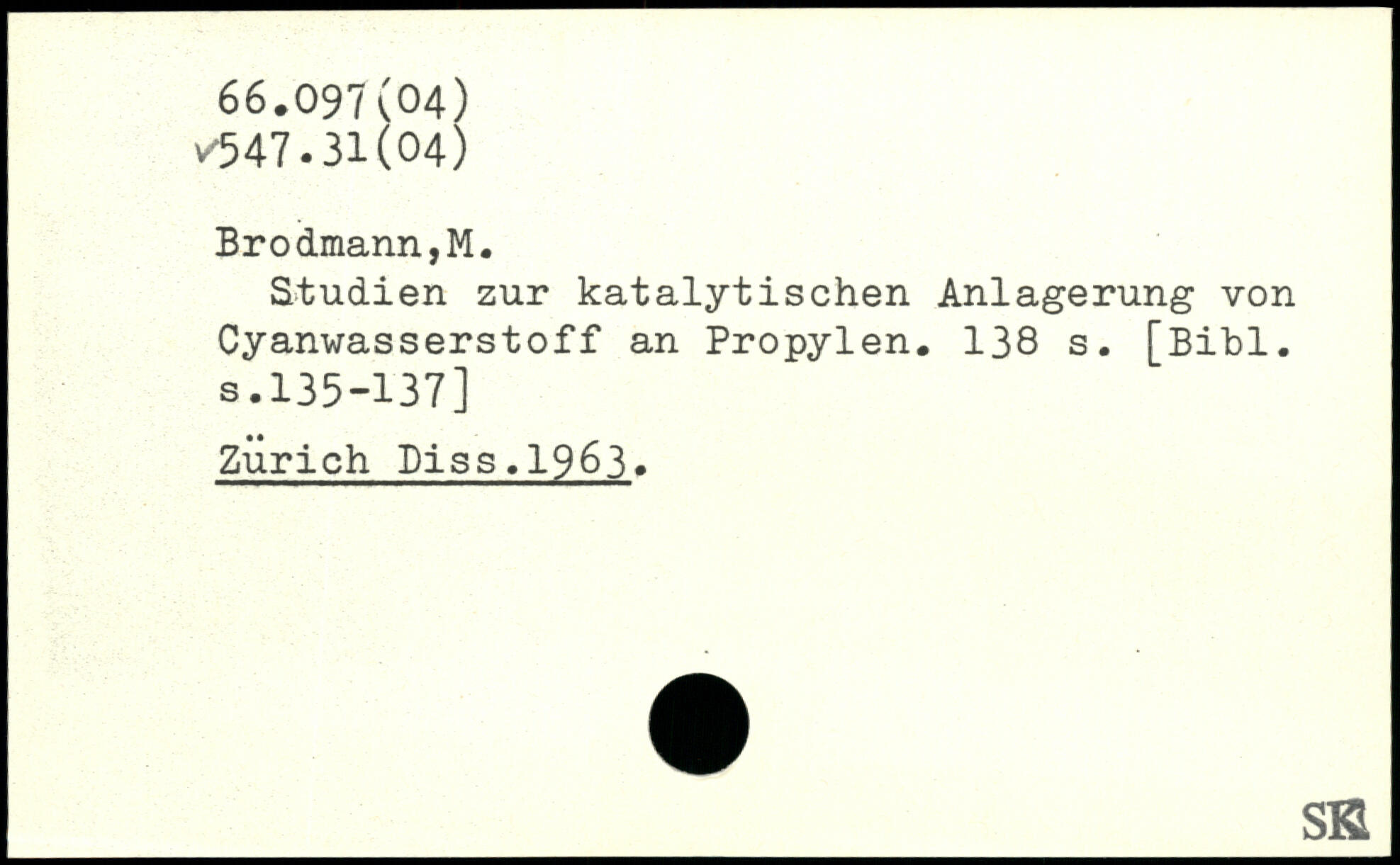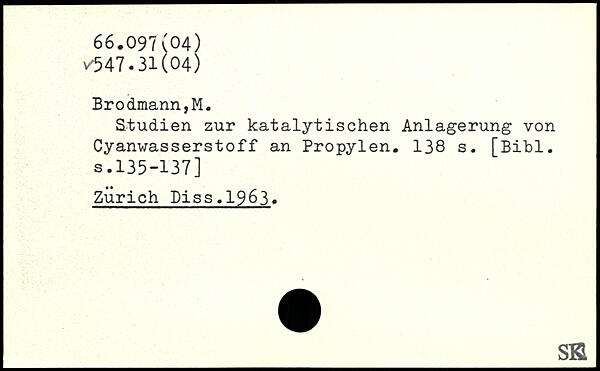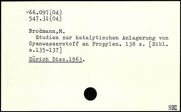 Studien zur katalytischen Anlagerung von Cyanwasserstoff an Propylen.