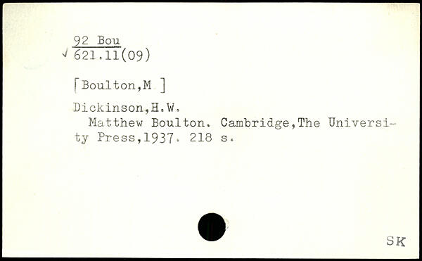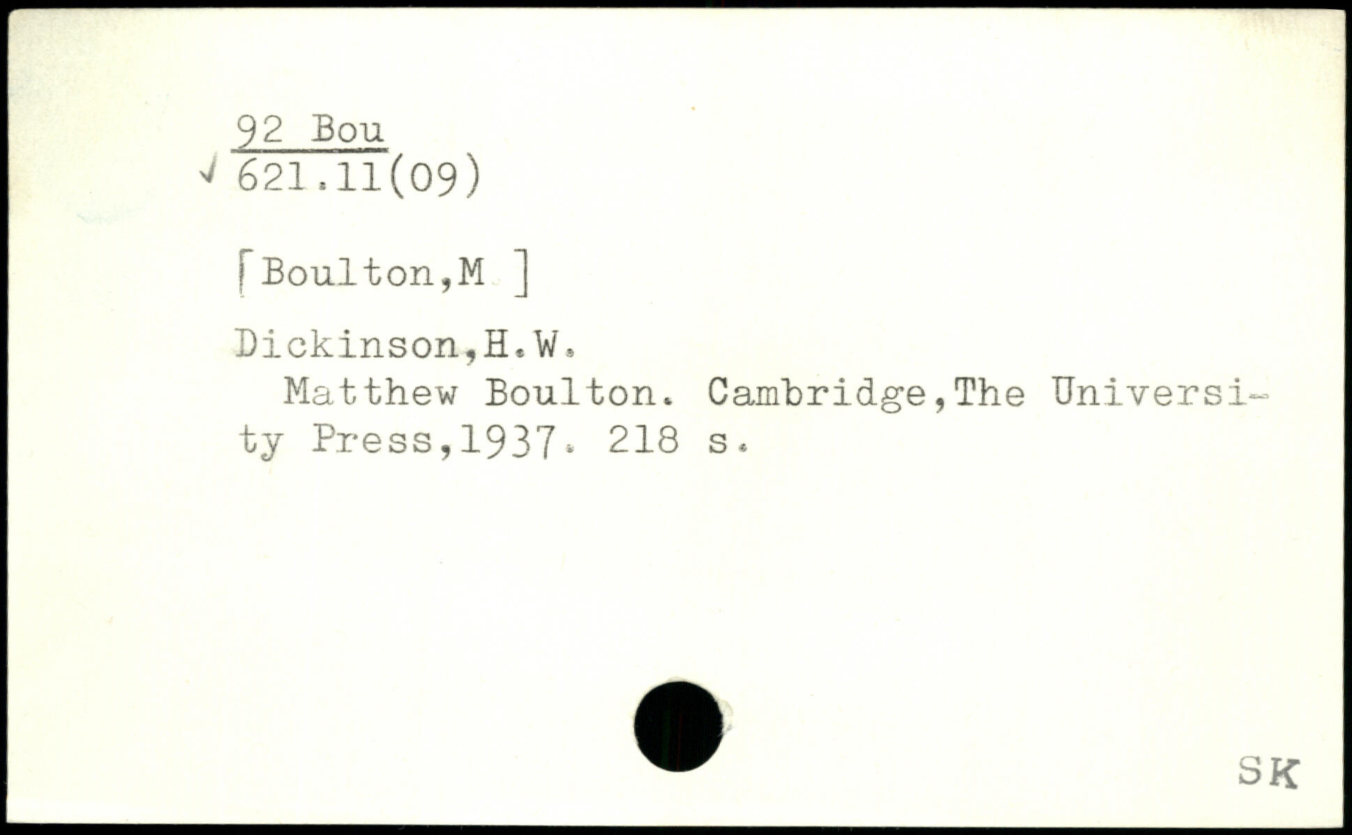Matthew Boulton, Cambridge,The University Press,1937. 218 s.