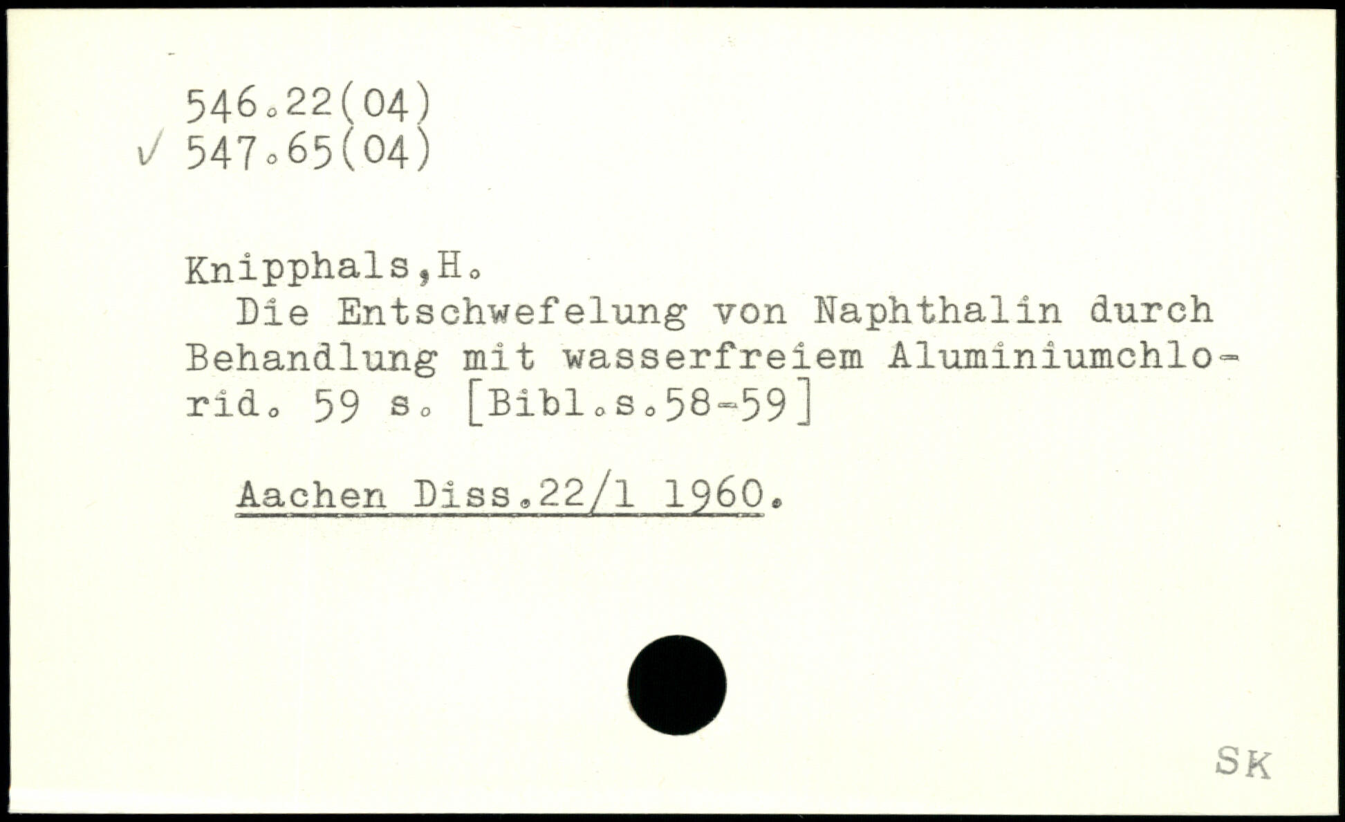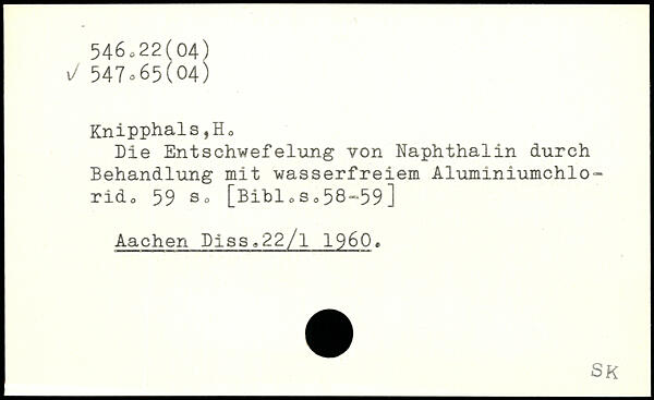 Me Entschwefelung von Naphthalin durch Behandlung mit wasserfreiem Aluminiumchlo-rido 59 3. [Bihlos058“59] Aachen Dissa22/l 1960.