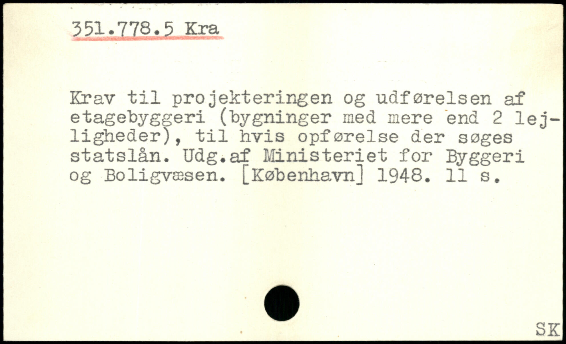 Krav til projekteringen og udførelsen af etagebyggeri (bygninger med mere end 2 lejligheder) , til hvis opførelse der søges statslån. Udg.af Ministeriet for Byggeri og Boligvæsen.