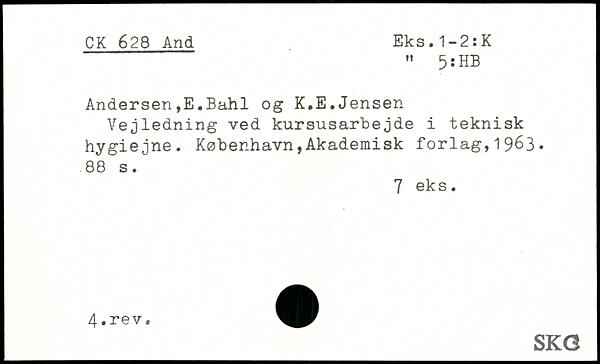 Andersen,E.Bahl og K.E.Jensen Vejledning ved kursusarbejde i teknisk hygiejne.