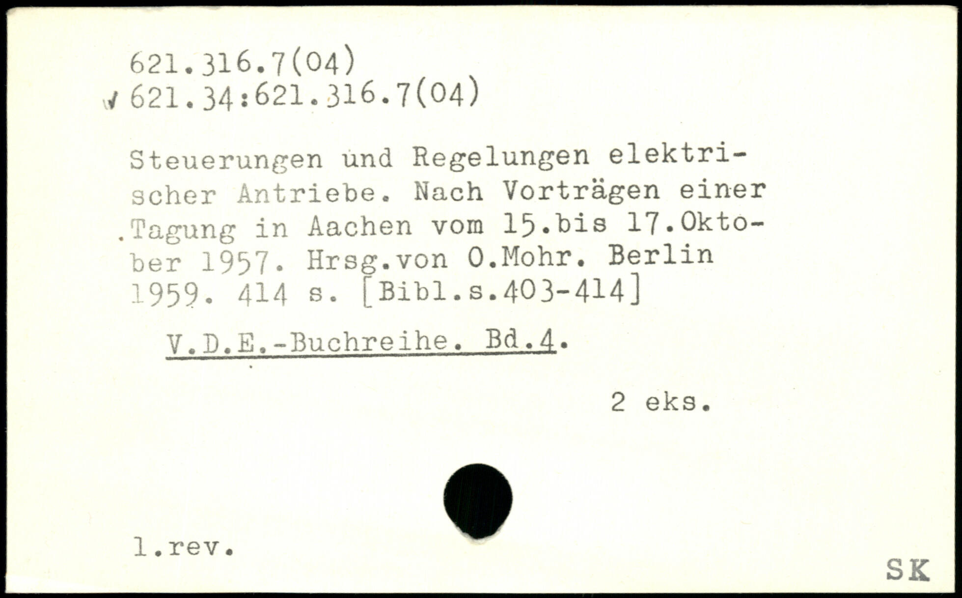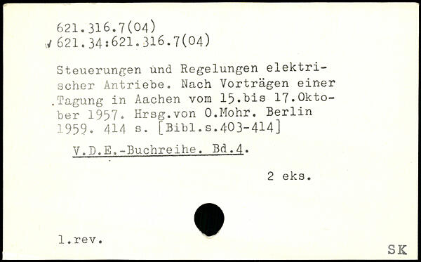 Steuerungen und Regelungen elektrischer Antriebe. Nach Vorträgen einer .Tagung in Aachen vom 15.his 17,0kto-.ber 1967. Hrsg.von O.Mohr.