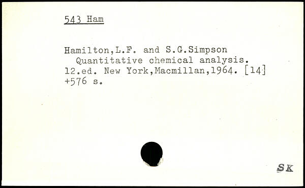 Hamilton,L.P. and S.G.Simpson Quantitative chemical analysis.