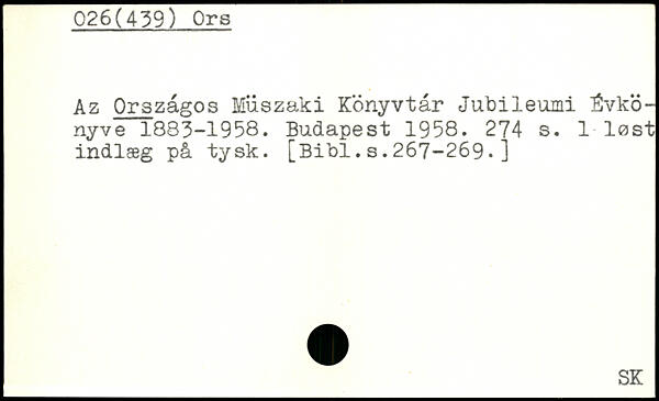 Az Orszågos Muszaki Kbnyvtår Jubileumi Évko-nyve 1883-1958.