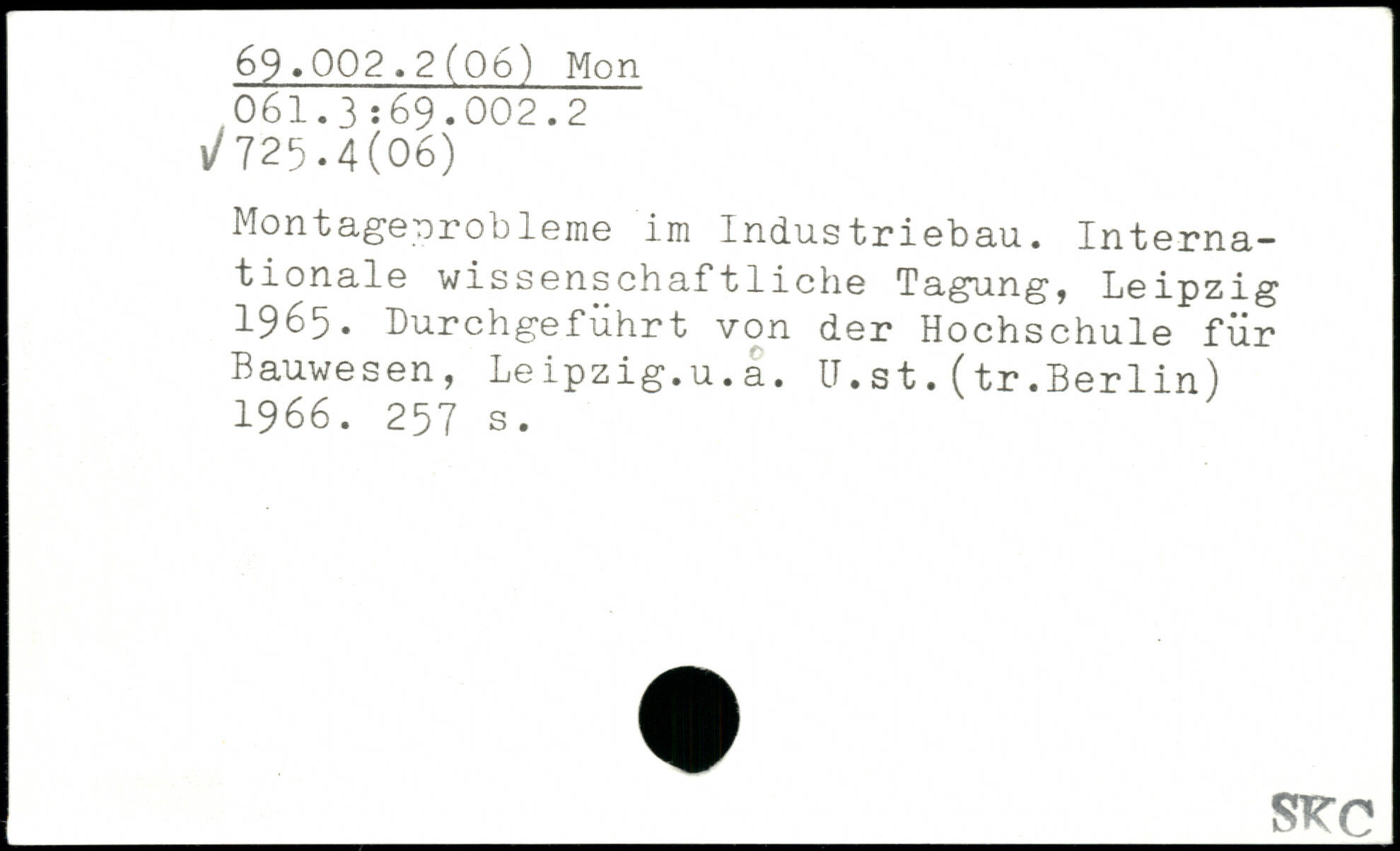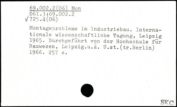 Montageprobleme im Industriebau. Internationale wissenschaftliche Tagung