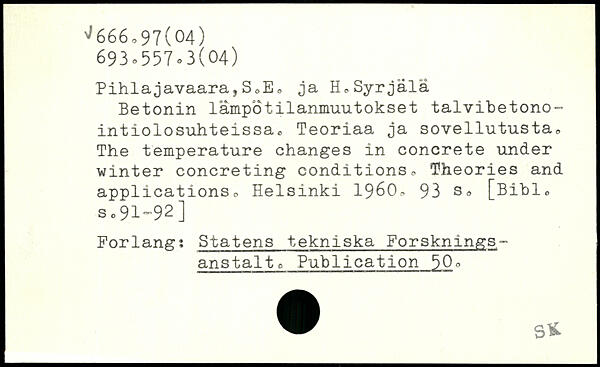 Pihlajavaara,SoEo ja HeSyrjalå :! Betonin låmpotilanmuutokset talvibetono-intiolosuhteissa,, Teoriaa ja sovellutusta. The temperature changes in concrete under winter concreting conditions, Theories and applications.