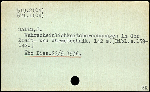 Wahrscheinlichkeitsberechnungen in der Kraft- und Wärmetechnik.