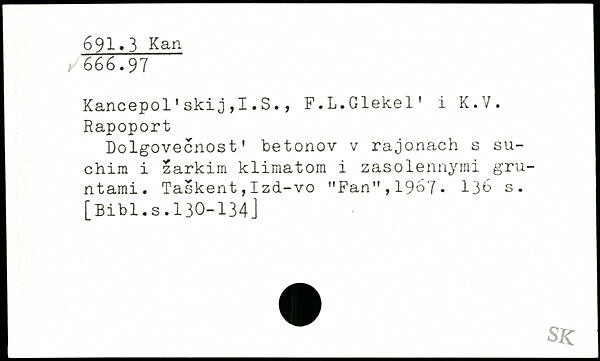 Dolgovecnost' betonov v rajonach s su-chim i zarkim klimatom i zasolennymi gru-ntami. Taskent,Izd-vo "Fan”,1967