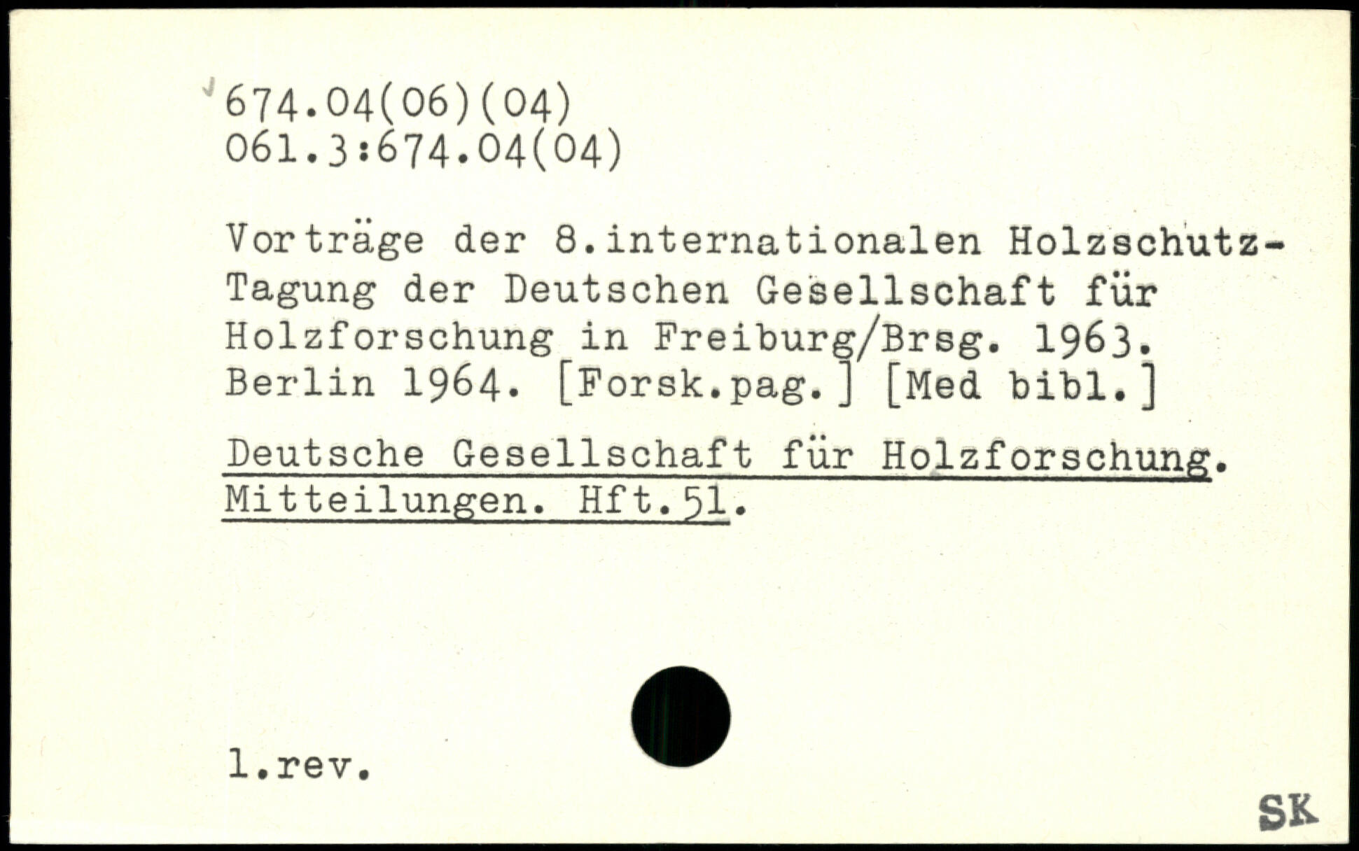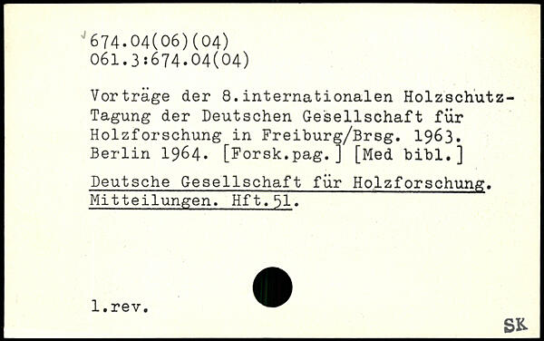 Vorträge der 8.internationalen Holzschutz-Tagung der Deutschen Gesellschaft für Holzforschung in Freiburg/Brsg. 1963.