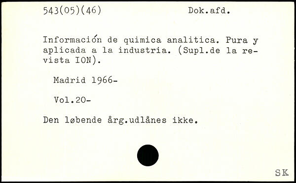 Informacion de quimica analitica. Pura y aplicada a la industria. (Supl.de la re-vista ION).