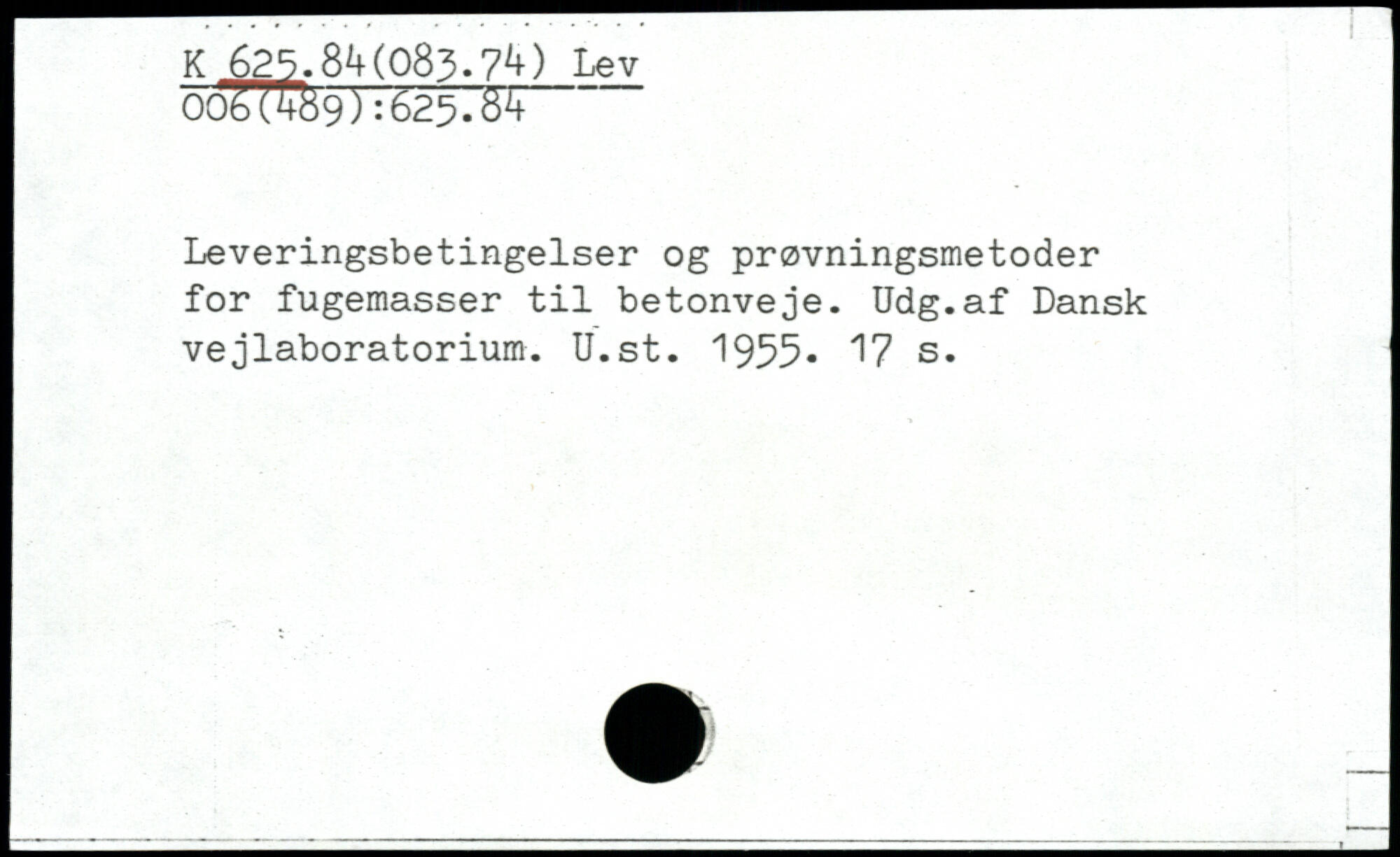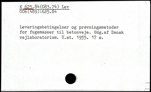 Leveringsbetingelser og prøvningsmetoder for fugemasser til betonveje. Udg.af Dansk vejlaboratorium. U.st. 1955-