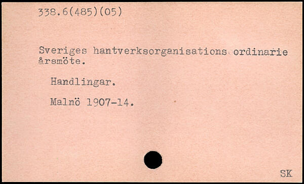 Sveriges hantverksorganisaiions ordinarie årsmöte. Handlingar. Malnö 1907-14.