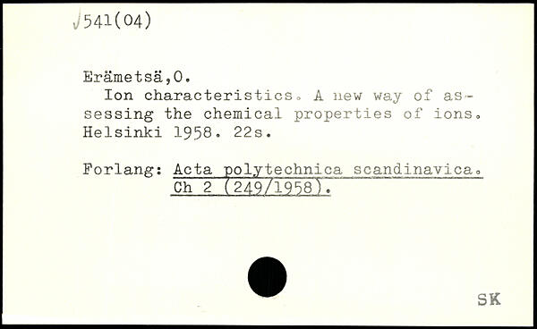 Ion characteristicso A new way of assessing the chemical properties of ions