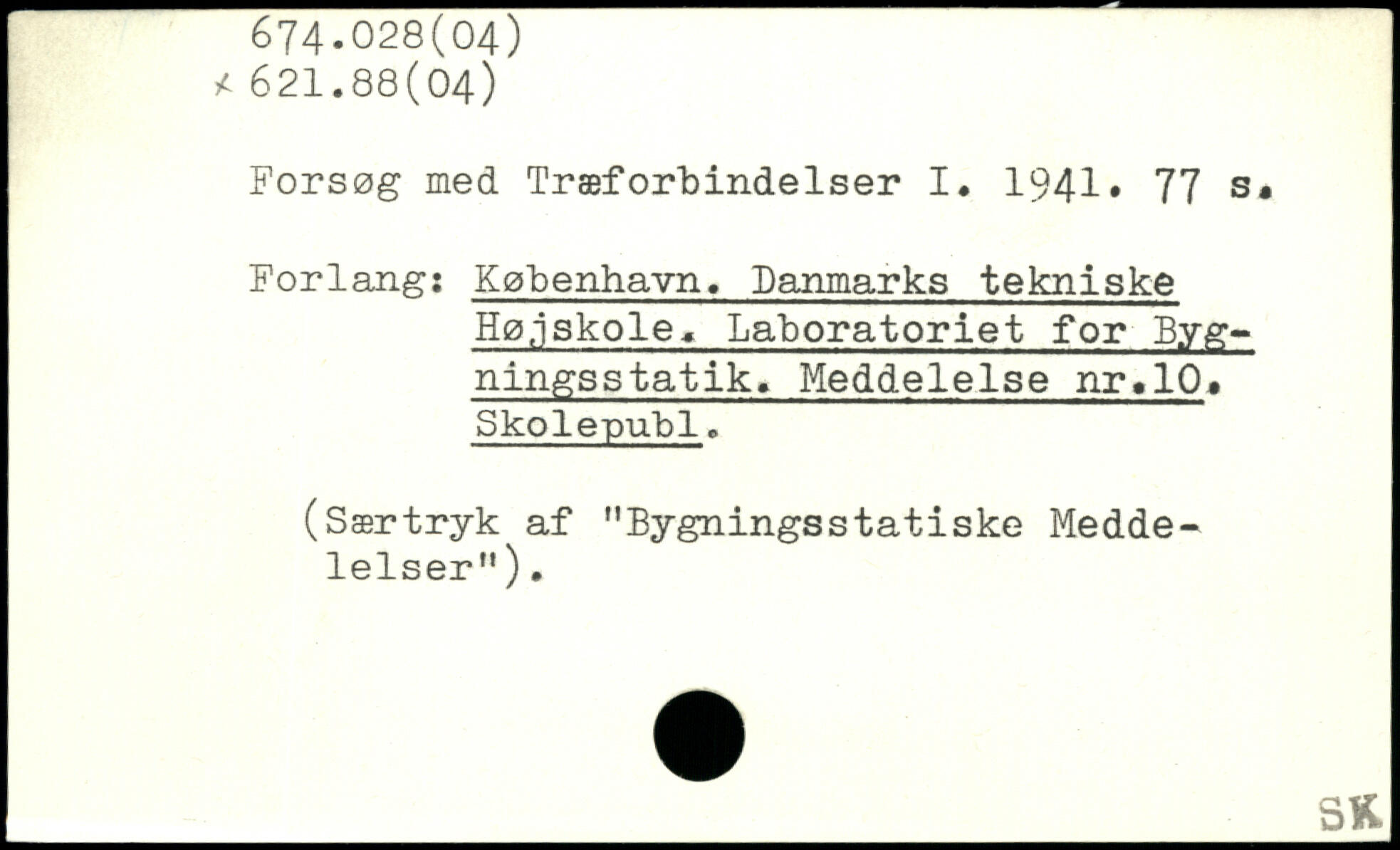 Forsøg med Træforbindelser I. 1941