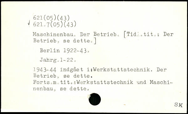 Maschinenbau, Der Betriebt [Tidi0titts Der Betrieb, se dette,]