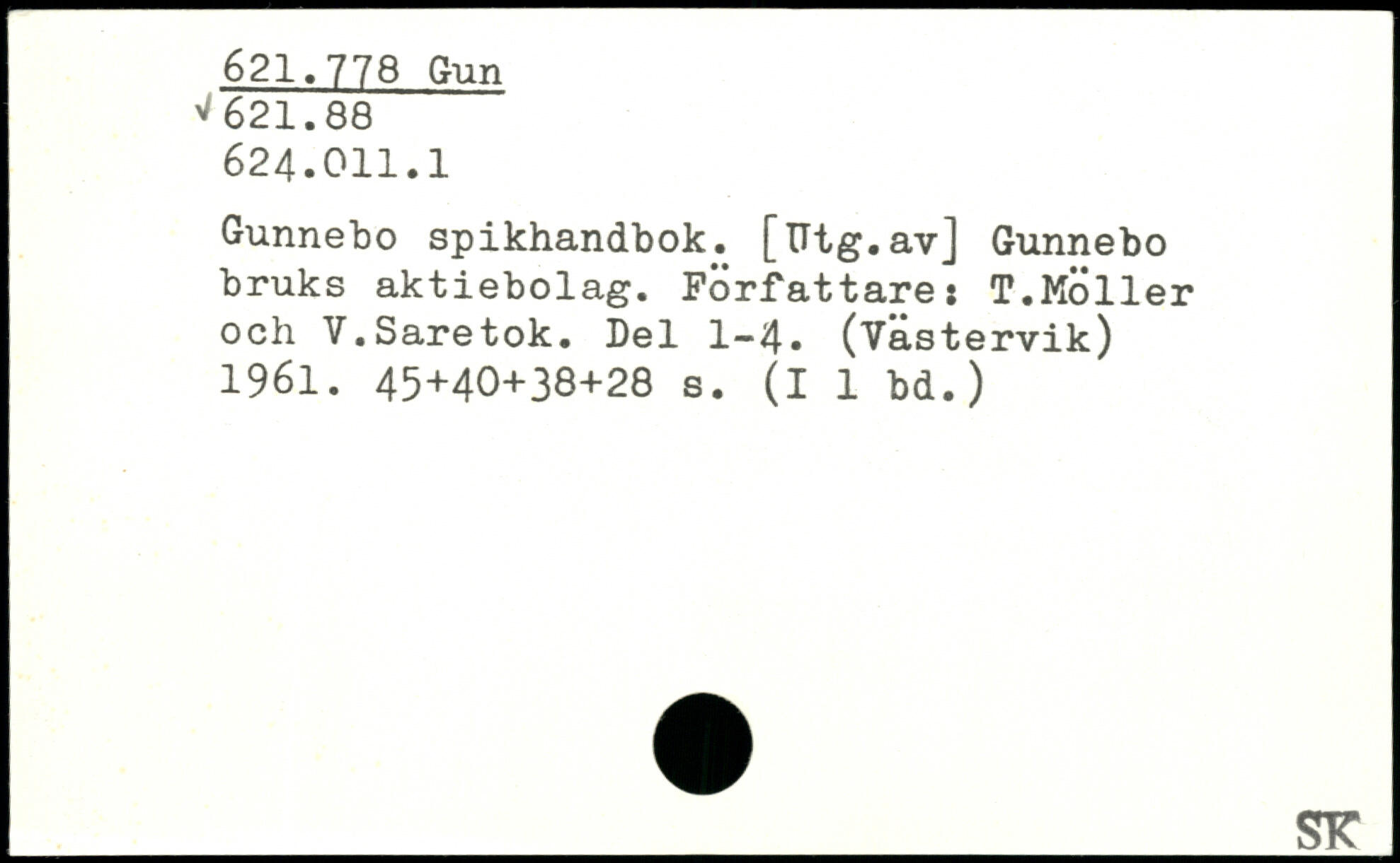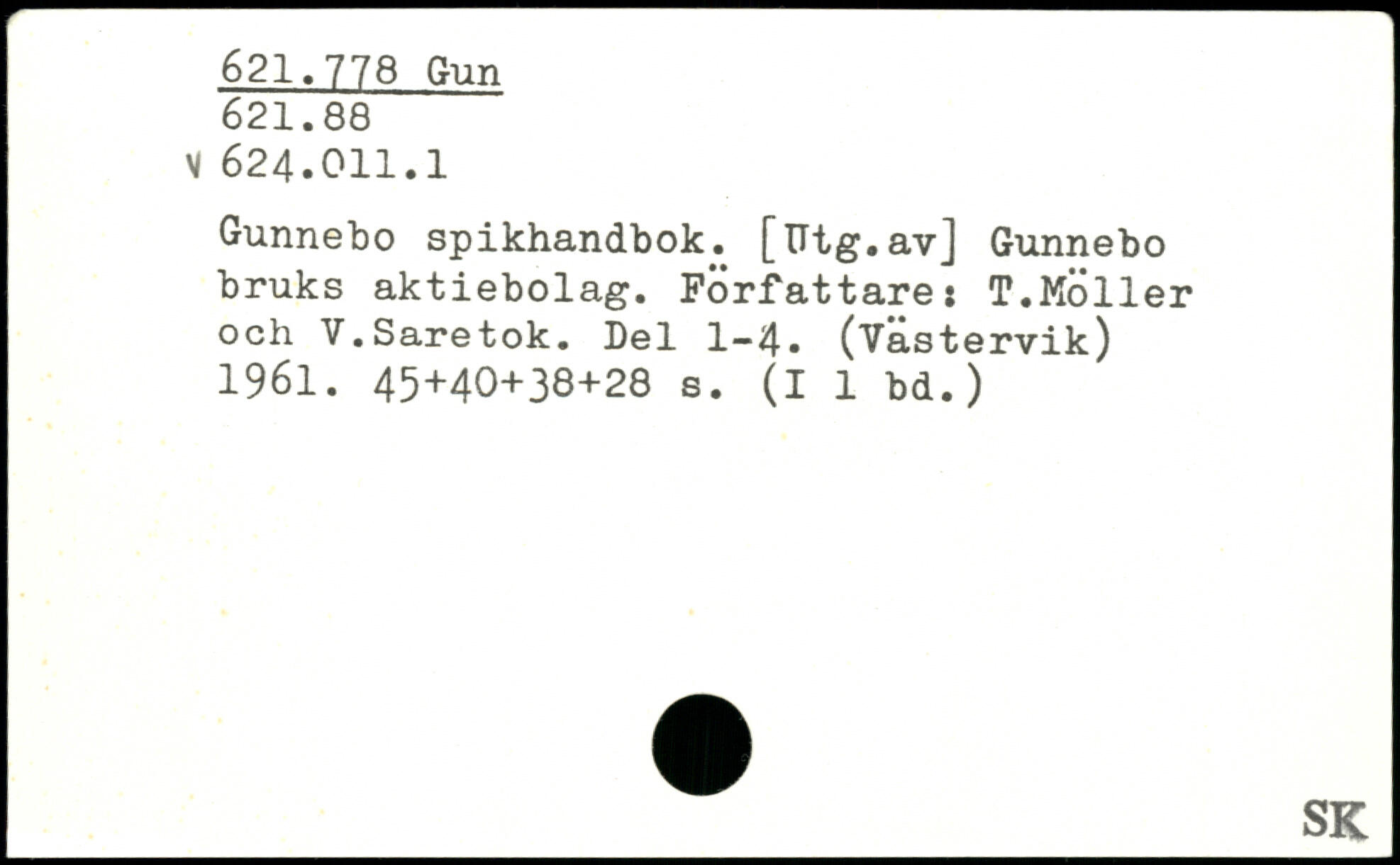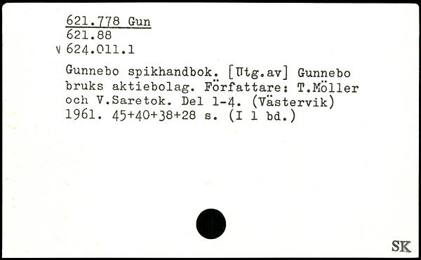Gunnebo spikhandbok. [Utg.av] Gunnebo bruks aktiebolag. Författare: T.Möller och V.Saretok. Del 1-4, (Västervik) 1961.