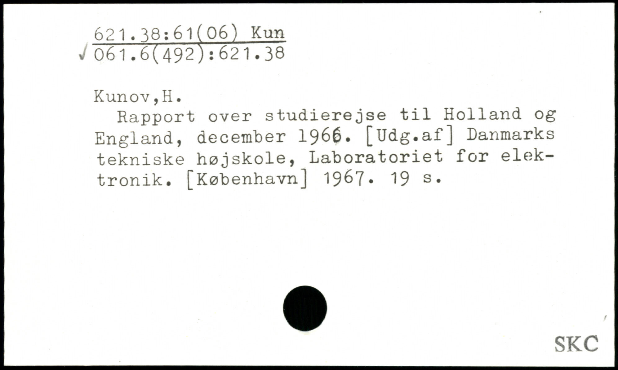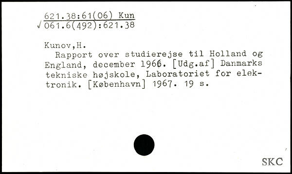 Rapport over studierejse til Holland og England, december 1966. [Udg.af] Danmarks tekniske højskole, Laboratoriet for elektronik. [København] 19^7-