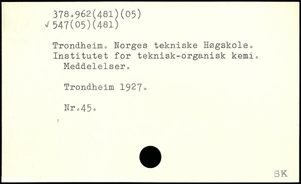 Trondheim,, Norges tekniske Høgskole<, Institutet for teknisk-organisk kemi,. Meddelelser0