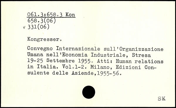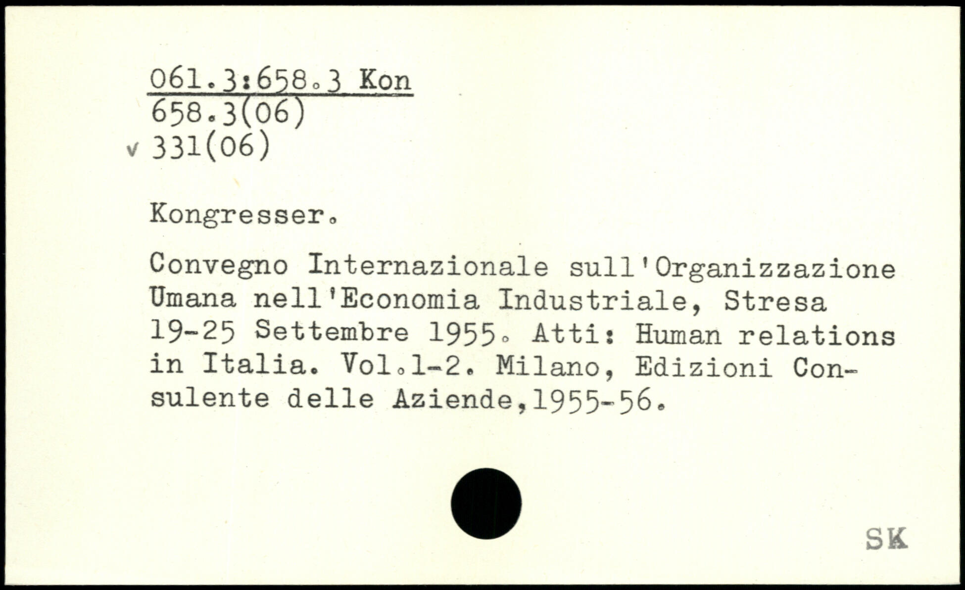 Convegno Internazionale sull’Organizzazione Umana nell’Economia Industriale, Stresa 19-