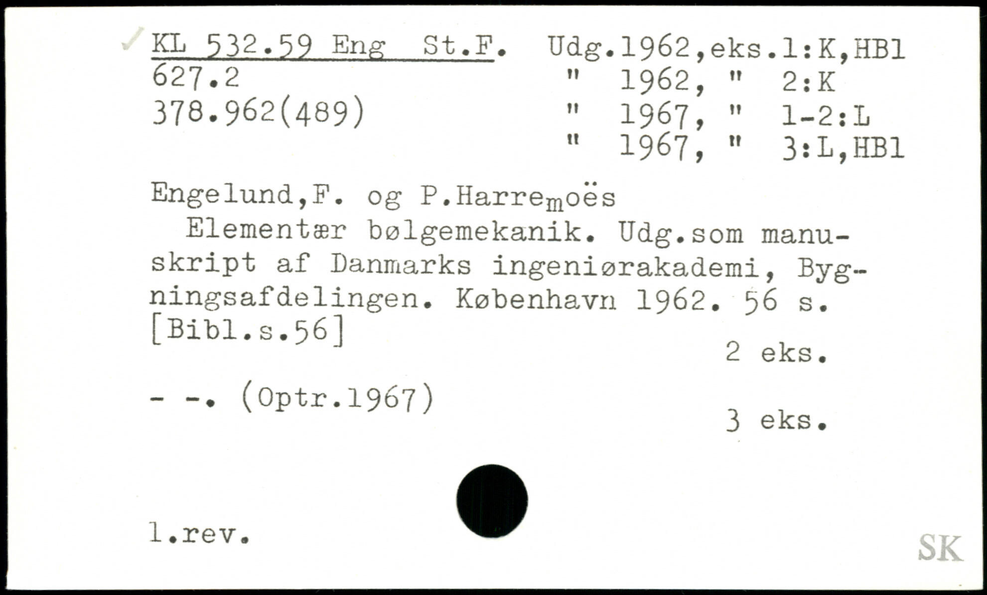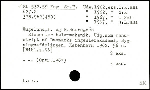 " 1967, " 3:L,HB1 Engelund,F. og P.Harremoes Elementær bølgemekanik. Udg.som manuskript af Danmarks ingeniørakademi, Byg-ningsaf delingen.