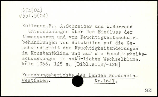Xollmann,F., A.Schneider und W.Serrand Untersuchungen über den Einfluss der Abmessungen und von Peuchtigkeitsschutz-behandlungen von Holzteilen auf die Geschwindigkeit der Feuchtigkeitsnderungen im Konstantklima und auf die Feuchtigkeitsschwankungen im natürlichen Wechselklima, köin 1966.