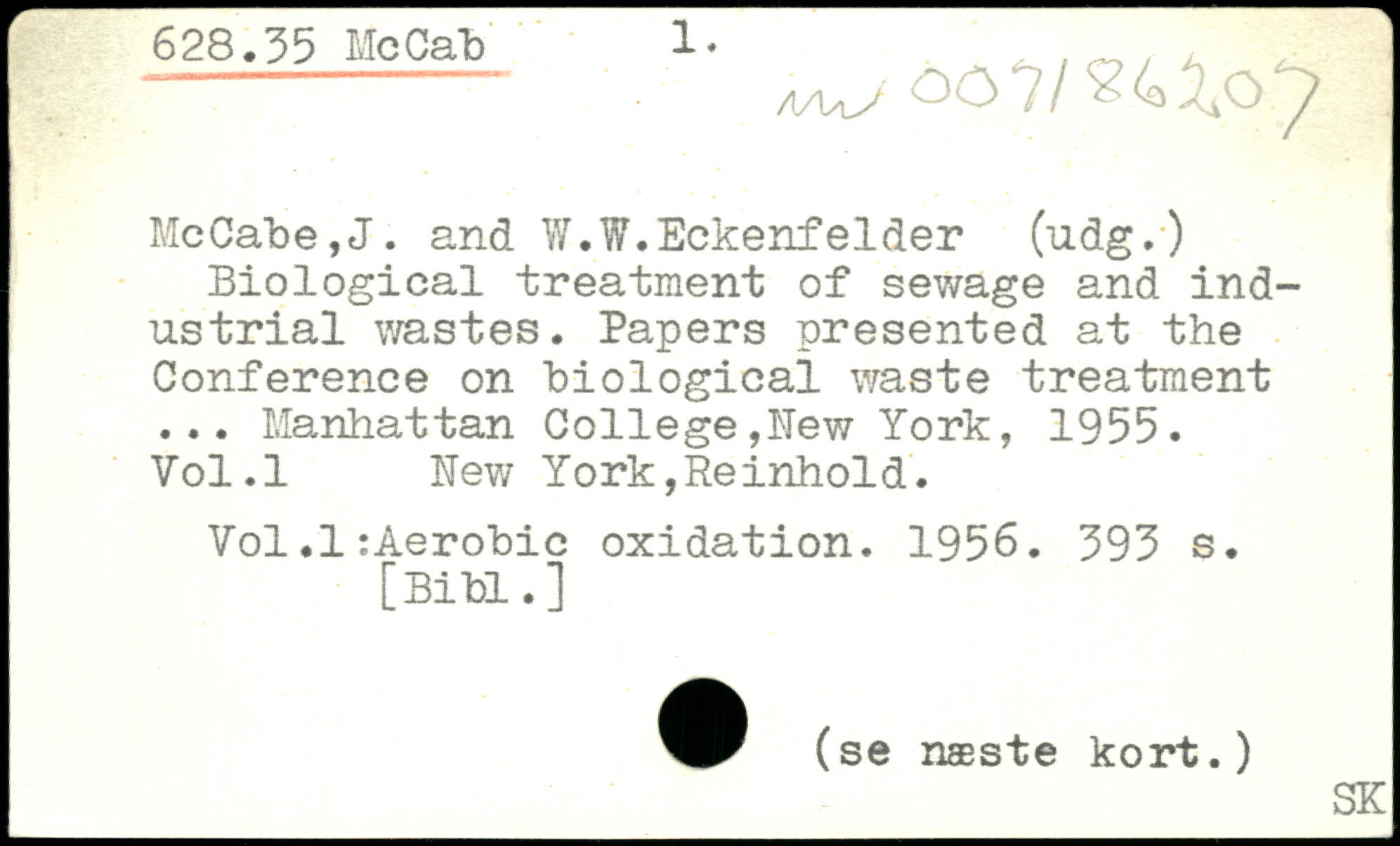 Biological treatment of sewage and industrial wastes. Papers presented at the Conference on biological waste treatment ...