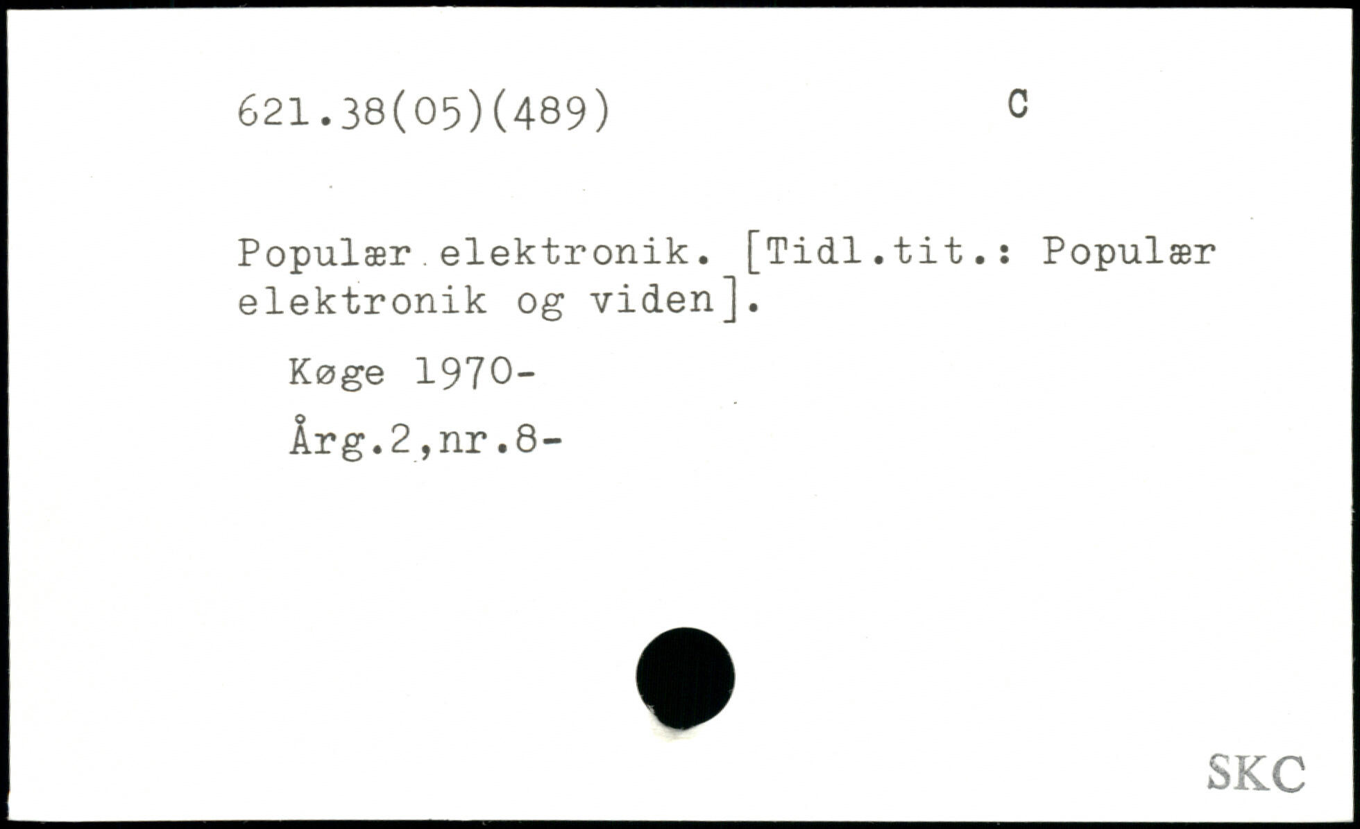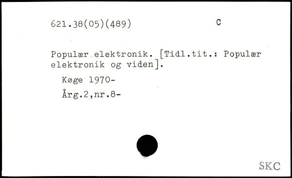 Populær elektronik. [Tidl.tit.: Populær elektronik og viden]. Køge 1970- Årg.2,nr.8-