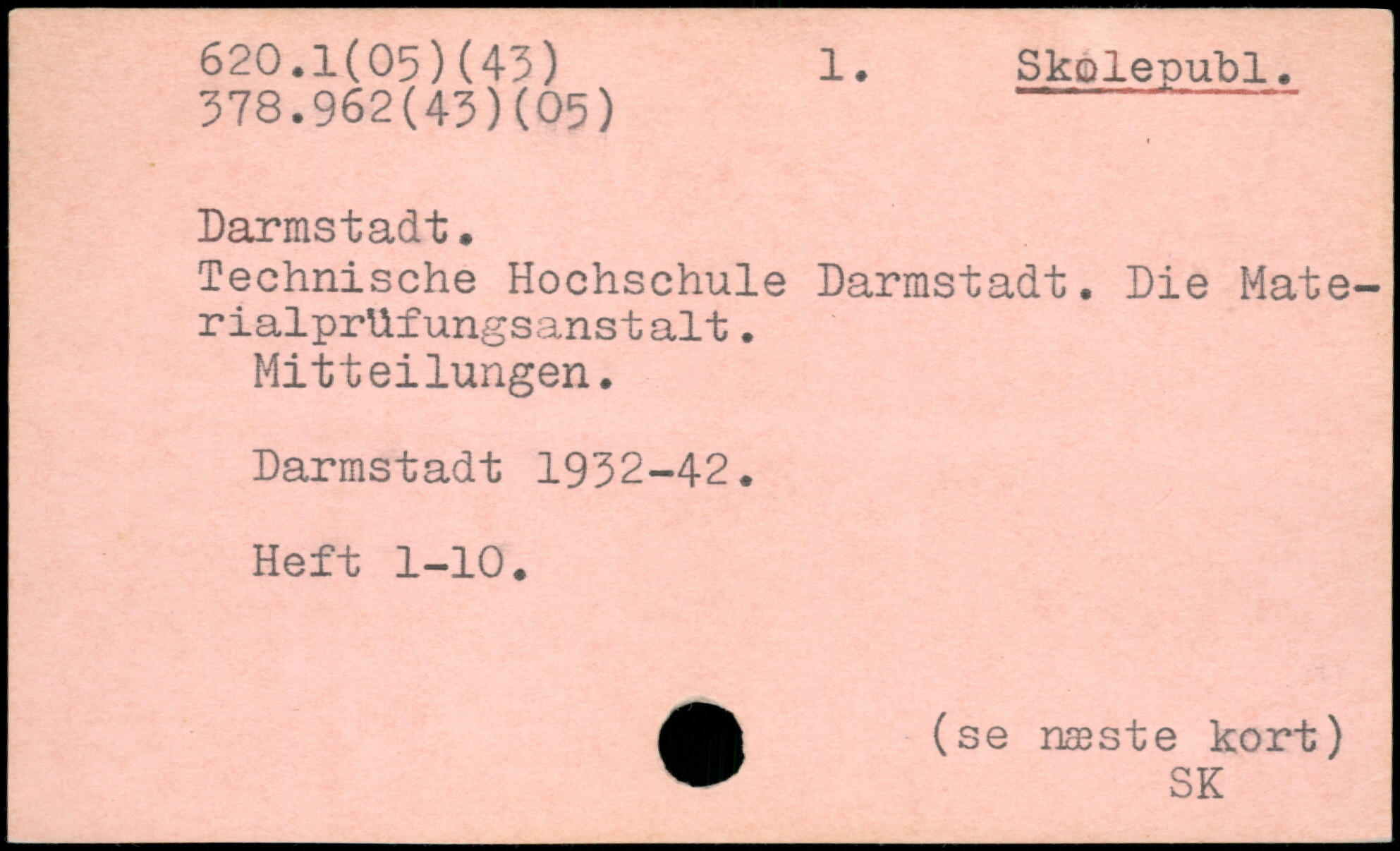 Technische Hochschule Darmstadt. Die Mate-rialprlifungsanstalt. Mitteilungen. Darmstadt 1932-42. Heft 1-10. .(se næste kort)