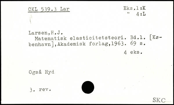 Matematisk elasticitetsteori. Bd.l. [København] , Akademisk forlag,1963.