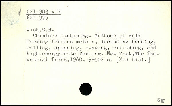 Wick,C ,EL Chipless machining, Methods of cold forming ferrous metals, including heading, rolling, spinning, swaging, extruding, and high-energy-rate forming