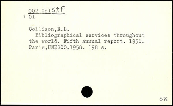 Bibliographical services throughout the world. Fifth annual report. 1956.