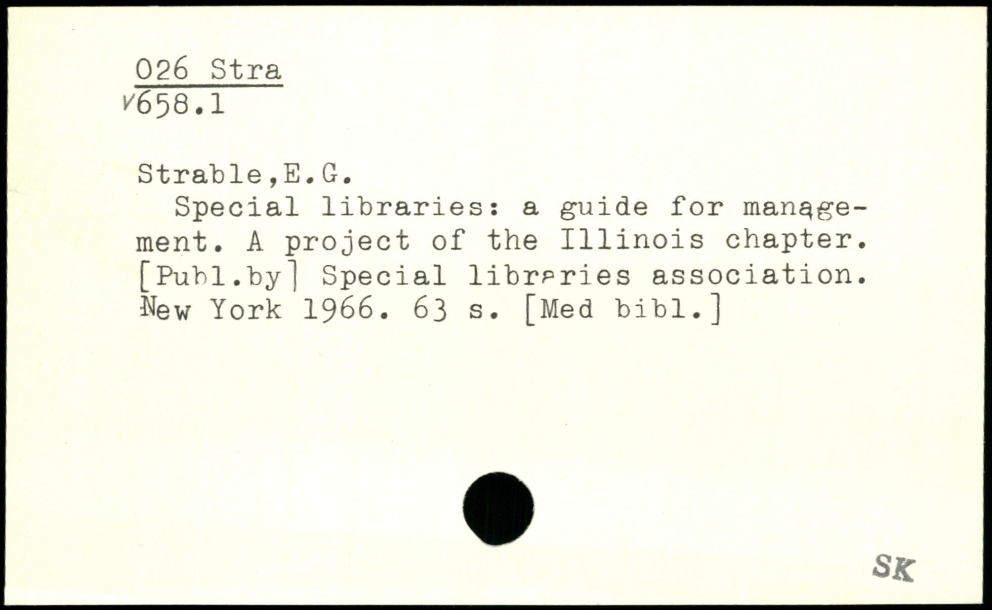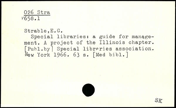 Special libraries: a guide for management. A project of the 1111nois chapter.