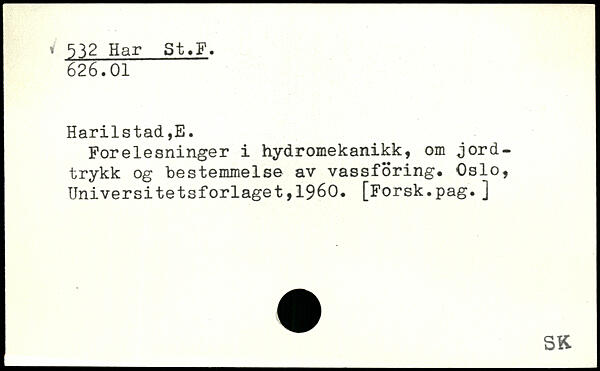 Forelesninger i hydromekanikk, om jord-trykk og bestemmelse av vassforing.