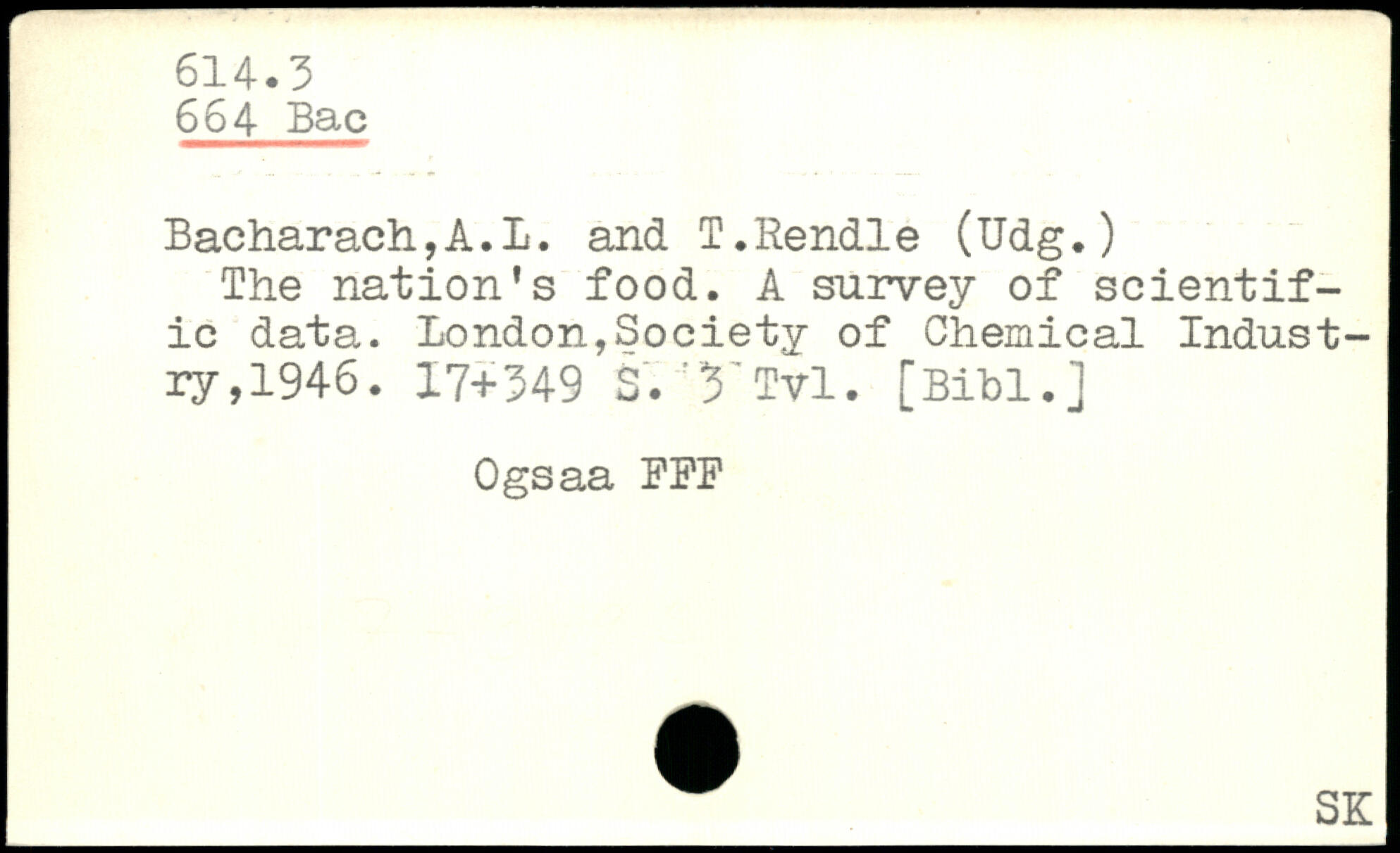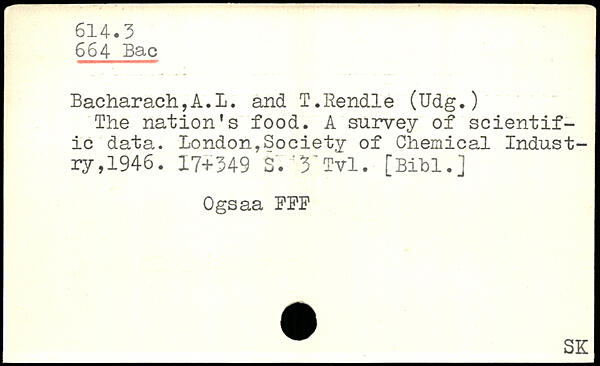Bacharach,A.L. and l.Rendle (Udg.) The nation’s food. A survey of scientific data.