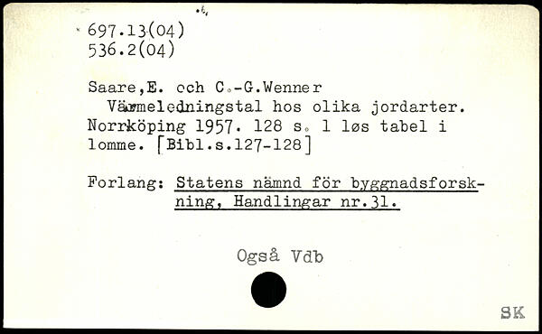 Saare,E. och C,-G.Wenner Väwneledningstal hos olika jordarter.