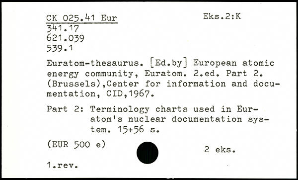 Euratom-thésaurus. [Ed.by] European atomic energy community, Euratom.