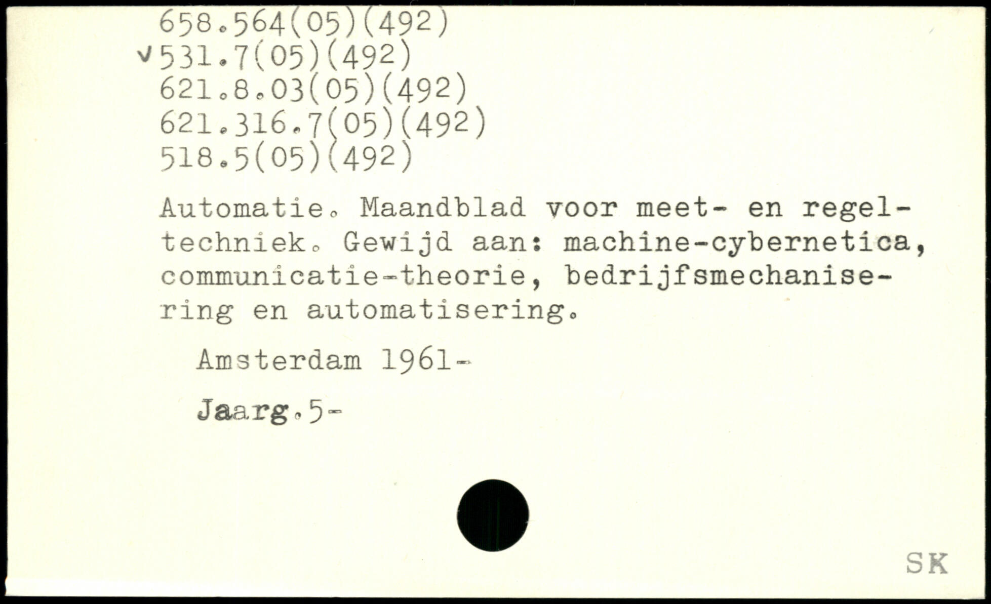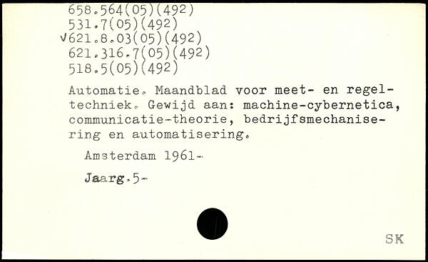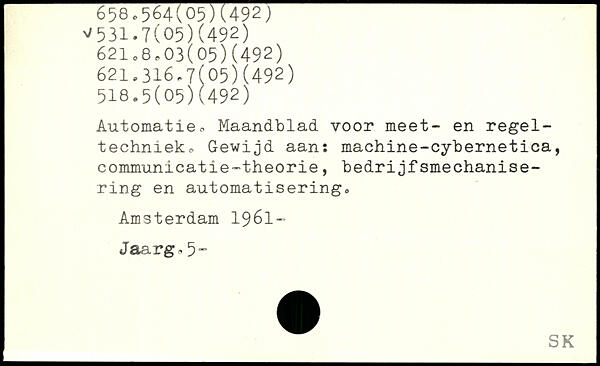 Automatie. Maandblad vooi. meet- en regel-techniekc Gewijd aan: machine-cybernetica, communicatie-theorie, bedrijfsmechanise- ring en automatisering, Amsterdam 1961-Jaarg,. 5-