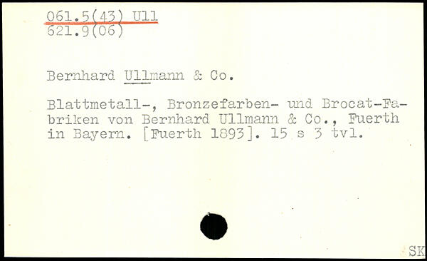 Bernhard Ullmann & Co. Blattmetall-, Bronzefarben- und Brocat-Pa-briken von Bernhard Ullmann & Co., Fuerth in Bayern. [Puerth 1893].