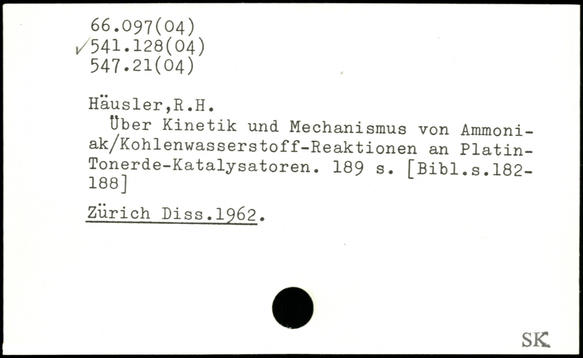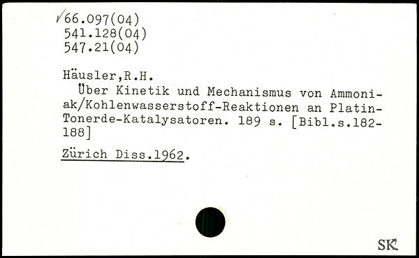 Uber Kinetik und Mechanismus von Ammoni-ak/Kohlenwasserstoff-Reaktionen an Platin-Tonerde-Katalysatoren.