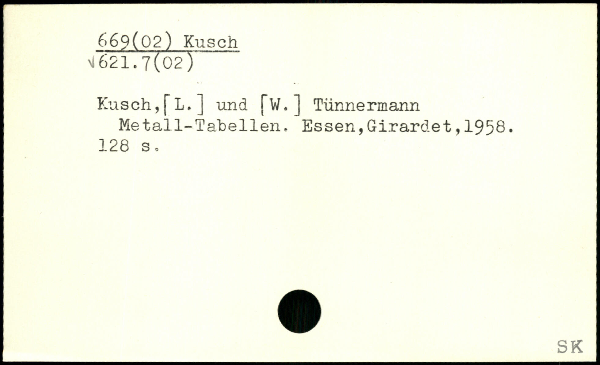 Kusch,[L.] und [W.] Tünnermann Metall-Tabellen.
