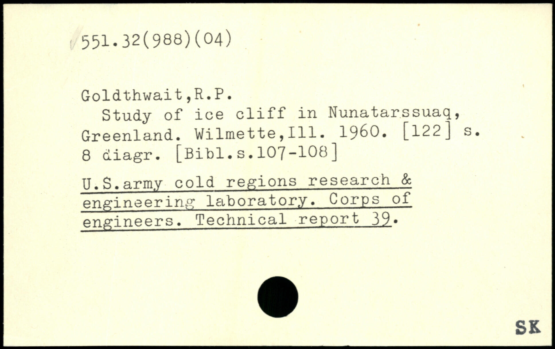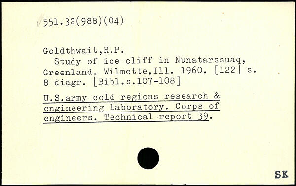 Study of ice cliff in Nunatarssuaq, Greenland. Wilmette,111. 1960. [122] s. 8 diagr.