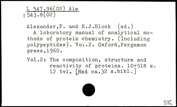 A laboratory manual of analytical methods of protein chemistry, (including polypeptides). Voi.2.