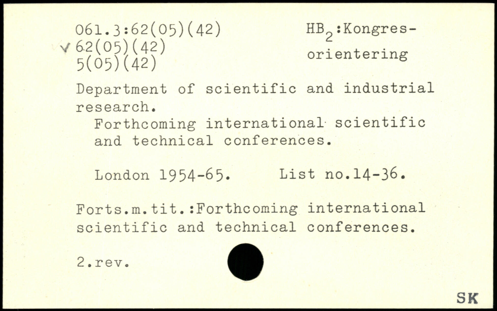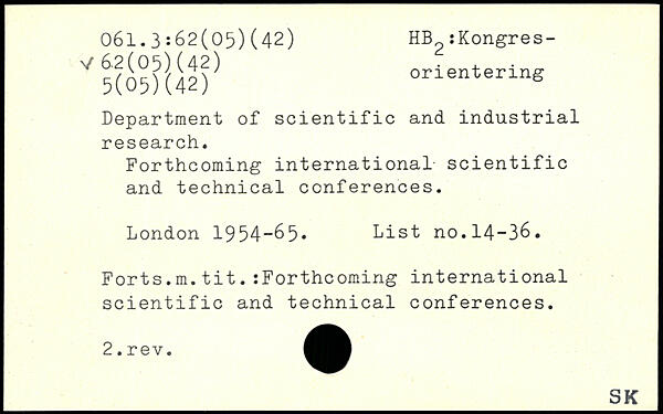 V5(05??42)) orientering Department of scientific and industrial research. Forthcoming international scientific and technical conferences.